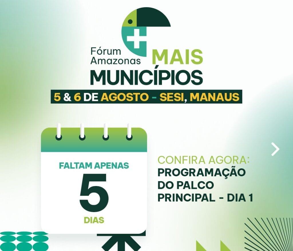Faltam 5 dias! Fórum Amazonas + Municípios 2025 confirma programação e reúne autoridades em Manaus 31 julho, 2025
